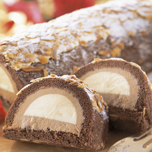 スライスアーモンドがパリッ、スポンジチョコがふわ~、中はトロ~リとろけるブリュレ入り。北海道十勝平野の最良酪農家が生産した特選牛乳と濃厚生クリーム、フランス産最高級のチョコ「バローナ」のその深いコクと味わいが口の中にひろがります。