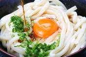 ねっとり濃厚な牧草卵を、アツアツ釜揚げ極太うどんに絡めて、一気にかき込むのが醍醐味♪