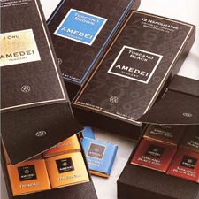 セレクションシリーズ4.6gのナポリタン(一口サイズチョコレート)が一箱に12枚入ったシリーズ。一枚一枚が包装されており、背面にはAMEDEIが考えるそのチョコレートの哲学が記されています。
